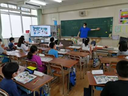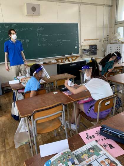 外国語の活動もフェイスシールドを使ってコミュニケーションをとっています。