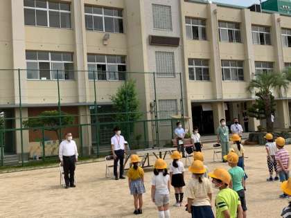 子どもたちは2週間前から分散登校が始まり、新しい先生や新しいクラスの友だちと顔を合わせることはありました。しかし、全員が集まるのは今日が初めてです。子どもたちの表情を見ていると、とても嬉しそうなのが伝わってきました。