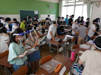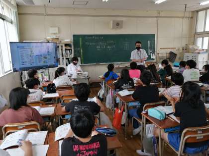 今日は久しぶりの理科(1組)があり、英語(2組)もみんなでしました。