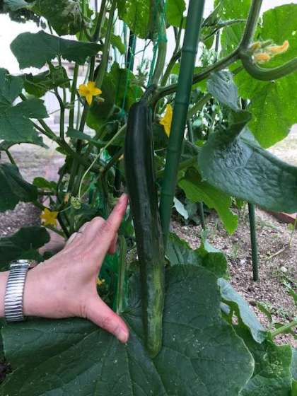 林先生の手の倍ぐらいあるきゅうりを発見!