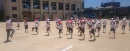 まず、走り方を確かめました。子どもたちにどう走ったらよいかきいてみると、「足をあげる」「腕をしっかりふる」など、今までに教わっていたポイントを答えることができる子が何人もいました。