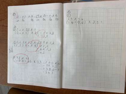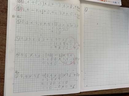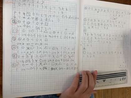 「計算のきまり」を小数のときも使えるのかを調べました。