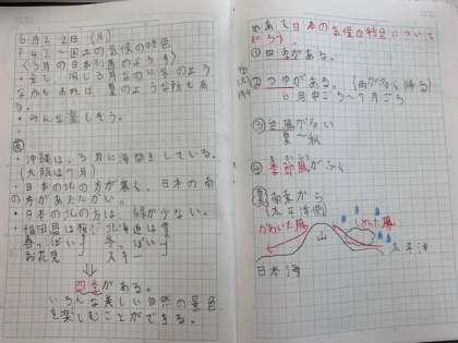 そして、梅雨や台風など、一年でさまざまな気候の変化があります。それぞれの時期や変化の理由を学習しました。