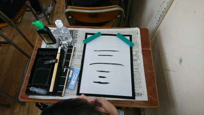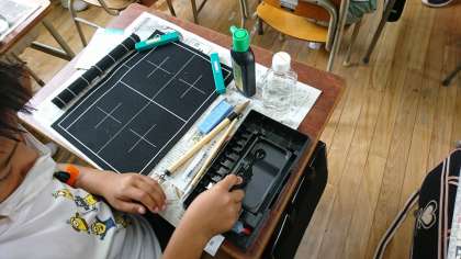 これから、筆づかいを学んでいきます。道具を大切に、きれいに使っていきたいですね。