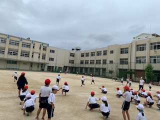 3年生のお兄さんお姉さんたちと一緒に体育をしました。