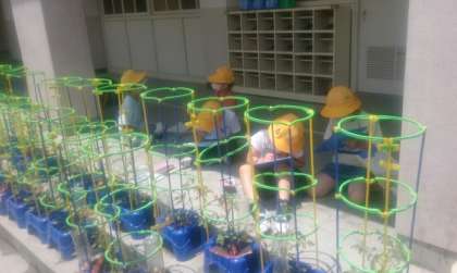 生活科では「大きくなあれわたしの野さい」で、ミニトマトのお世話・観察を続けています。
