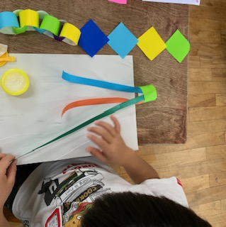 好みの色の色紙を使って、1本の指を使ってのりをとりました。