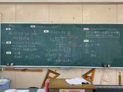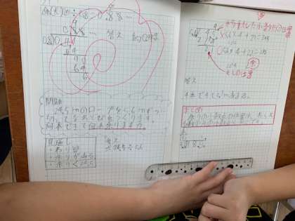 余りのある小数のわり算の筆算の仕方を学習しました。
