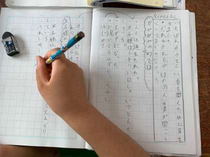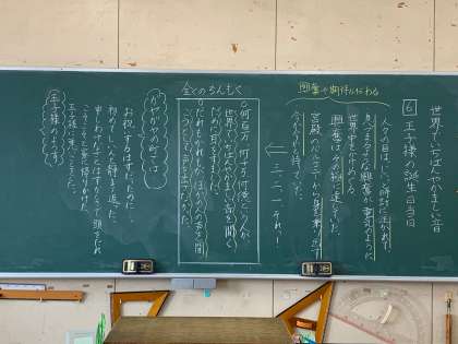 今日はギャオギャオ王子の誕生日当日の場面を学習しました。この場面は「山場」といって、物語の中で一番盛り上がるところです。ギャオギャオ王子が希望したプレゼントは届いたのでしょうか・・・