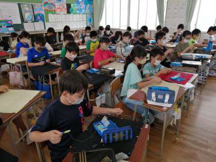 ゲストティーチャーのI先生が子どもたちにわかりやすく、仕付けの仕方を教えてくえました。