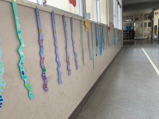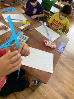 今日は、素敵な雨を作りました。はさみとのり、そしてパスを使って作りました。