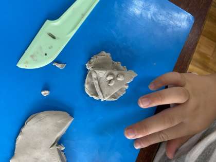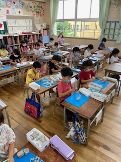 丸めたり細くしたり、そこに模様をつけたり、工夫をして楽しく活動しました!