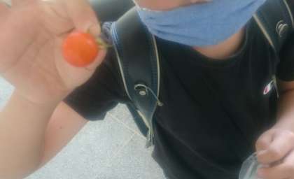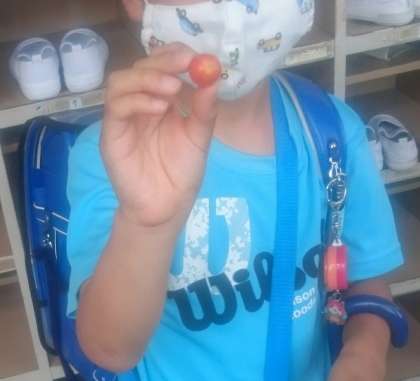 赤い実ができた子から収穫をして、お家に持って帰ってもらいます。間隔を開けて一粒ずつ持ち帰ることになると思いますが、ご家庭でぜひ召し上がってください!