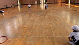 日も高く、気温がぐんぐん上がっていますので、水分補給に気を付けながら講堂で体育をしました。