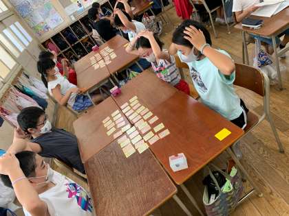 一学期最後の百人一首大会を行いました。取るスピードがみるみる早くなっているので、少し驚いています...さすが五年生ですね!どのグループもいい勝負で大盛り上がりでした★