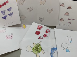 動物や食べ物、中にはキャラクターなど、思い思いのかわいいたし算絵本が出来上がりましたよ。