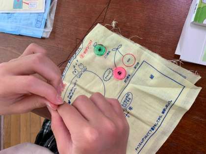 家庭科「ボタンつけ」(5年生)