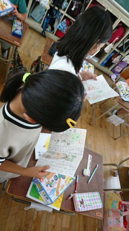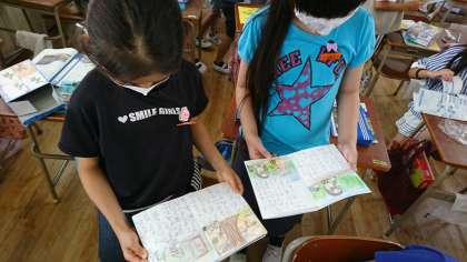 国語科の「はりねずみと金貨」で、あらすじを考える授業で絵本を作成していましたが、いよいよ完成して友達と読みあいました。
