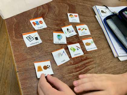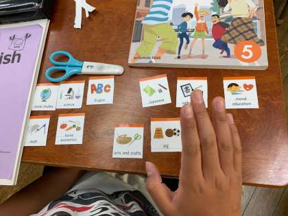 夏休みの暮らし方について伝え合うレッスンと教科(Subjects)の単語を覚えました。聞いたことある単語がほとんどなので、スムーズにカードを取ることができていました★