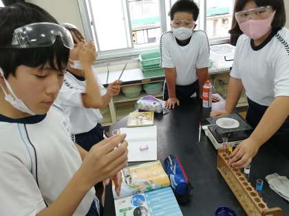 5つの水溶液の匂いを嗅いだり、蒸発させたりして特徴をまとめました。