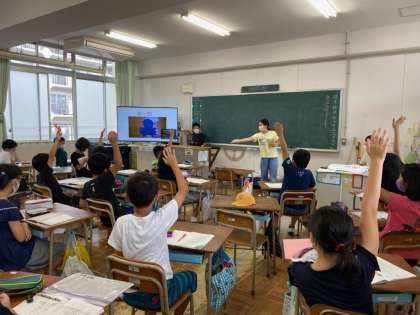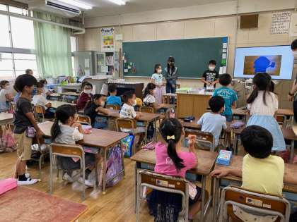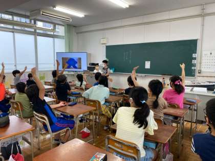 シルエットを見て、考えた後、正解を見ると「あぁ〜!それか!!」などの声が聞こえてきました。前に出ている集会委員のみんなは、もう慣れたように、かっこよく進行してくれました。