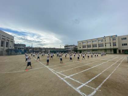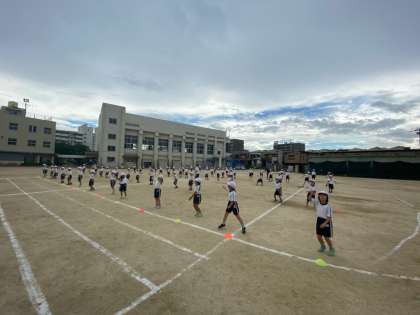 途中で雨が降ってきましたが...一曲を運動場で通して踊ることができました。