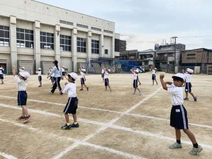 初めに、岸本先生から運動会のスローガンのように「笑顔忘れず」ダンスを楽しんで踊ろう!と、話がありました。