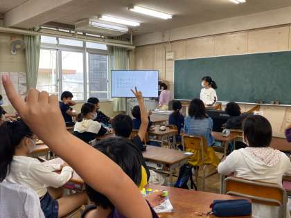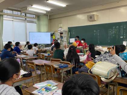 今日はミニ集会があり、集会委員の皆さんが、教室に来て1〜4年生の、「先生クイズ」をしてくれました。出してくれたクイズに、先生の意外な趣味や、すきなキャラクターに驚いた子どもたちの顔がみられました。