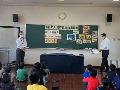 区役所の方がお話に来てくださいました。子どもたちは非行をしてはいけないことだとわかっているので、今後巻き込まれないようにすることが大切ですね。お家でもルールを決めるなどして、安心・安全に過ごしていけるようにしていきましょう!