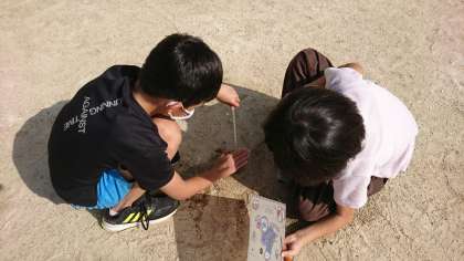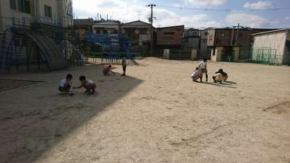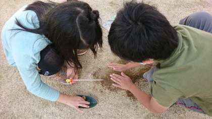 前回の「太陽と影」の学習から、日光が関係していることを予想して地面の温度をはかることにしました。