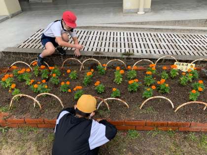 区役所からいただいたお花を植えました。委員会のお友だちが毎日水やりや雑草ぬきをして大切に育ててくれています★
