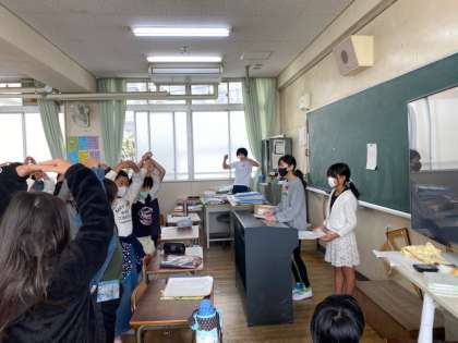 集会委員の子どもたちは、それぞれの教室に行く前に練習をし、みんなに楽しんでもらえるよう、頑張っています。