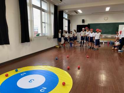 ボールを点数の中に入れるのに、力の加減が難しくて、ドキドキ。