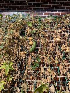 春から育てているヘチマとヒョウタンを