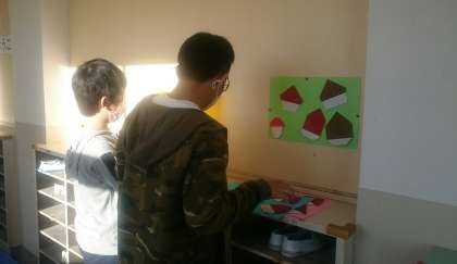 11月に合わせて、どんぐりやきのこなどを折り紙で作りました。
