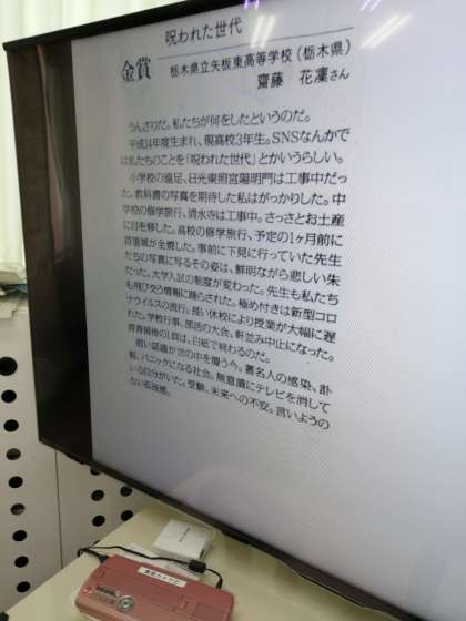 今回は作文コンクールで金賞を受賞した高校生の作文「呪われた世代」というものを読みました。