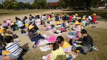 おうちの方が作ってくださったお弁当でおひるごはんと、その後は班のメンバーで遊びです。