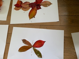 朝晩秋の深まりを見せる今日この頃、桜の木の下には色とりどりの落ち葉がありました。たくさん集めて、思い思いの形を作りました。