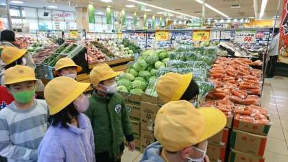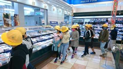 「店で働く人」の学習のまとめをして、スーパーマーケットへ見学に行きました。