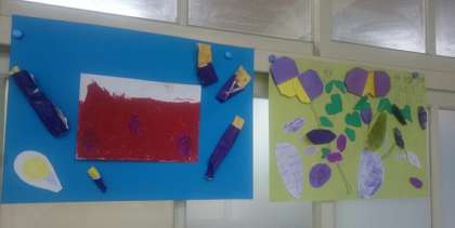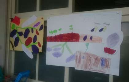 同じサツマイモという題材でも、土から出てきた大きなおいもや、おいもほりをしている様子、サツマイモを料理した焼きいもなど、色々なものが出来上がりました。