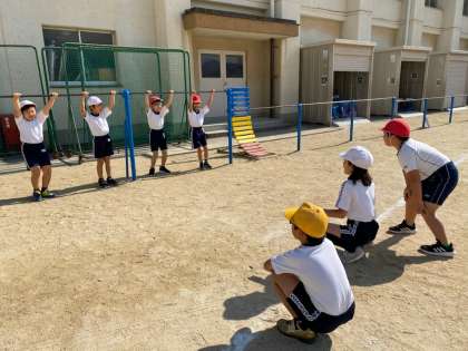 鉄棒では、さるやツバメ、ぶたのポーズ、コウモリなどたくさんの動物になりました。