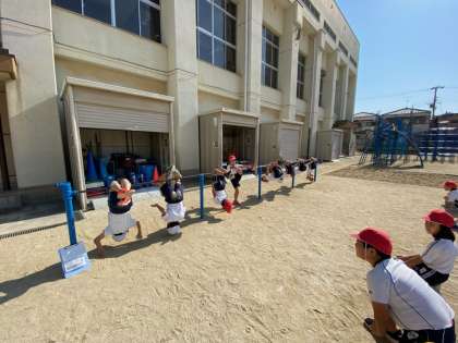 体育委員が前に出て、準備運動をした後、ラダーやジャングルジムを使った運動と、鉄棒を使った運動をしました。