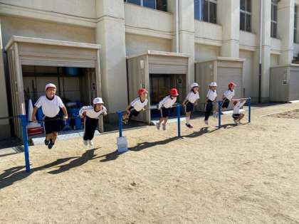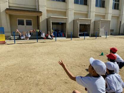 鉄棒は、足抜き前回りや足抜き後ろ回りをした後、逆上がりにも挑戦です。