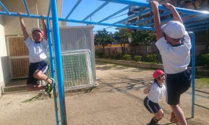 うんていを使って、よこわたりにチャレンジです!手の動きを使って、上手にわたることができました。