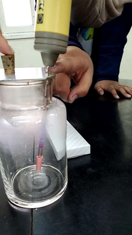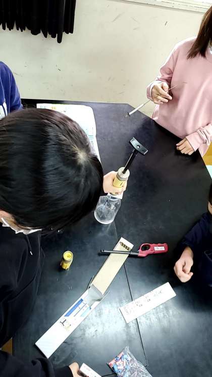 理科の実験では、ものが燃えた後の空気の変化について気体検知菅をつかって結果を確かめることができました。