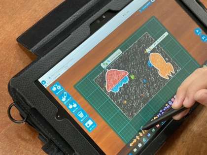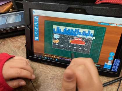 今回は、習得した内容を使い、イラストを動かす、音を鳴らすなど、楽しいプログラミングになるように工夫しました。スーパーマリオのように、コインをゲットする動きを入れている子もいました。