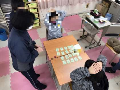 4年生で百人一首の勉強をしているということで、なかよしでも百人一首の「源平合戦」という対決を行いました!