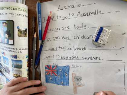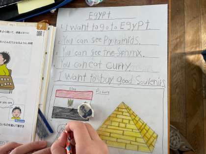 「何がほしいですか?」「どこに行きたいですか?」に対する返事のレッスンをし、来週のプレゼンテーションに向けて練習をしました。外国に興味がある子がたくさんおり、その国について知ったり話したりすることがとても楽しいようです。自分が行きたい国についてみんなに発表するのが楽しみですね★