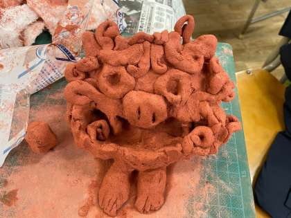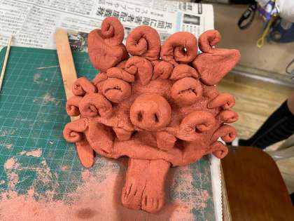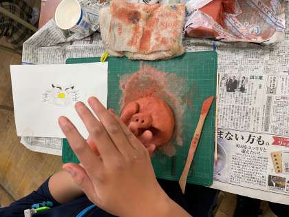 粘土でシーサー作りをしました。シーサーはお家の守り神です。それぞれの個性が光るシーサーを作ることができました!来週は色を塗ります★