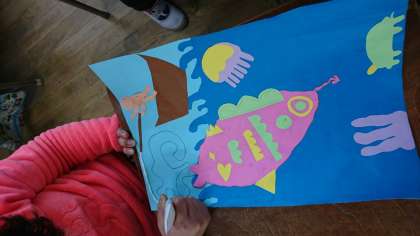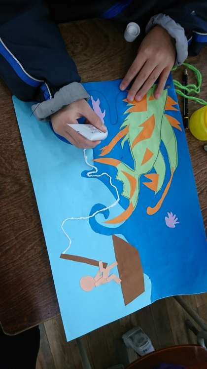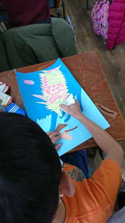 先月から取り組んできた紙版画も、いよいよ最終段階です。